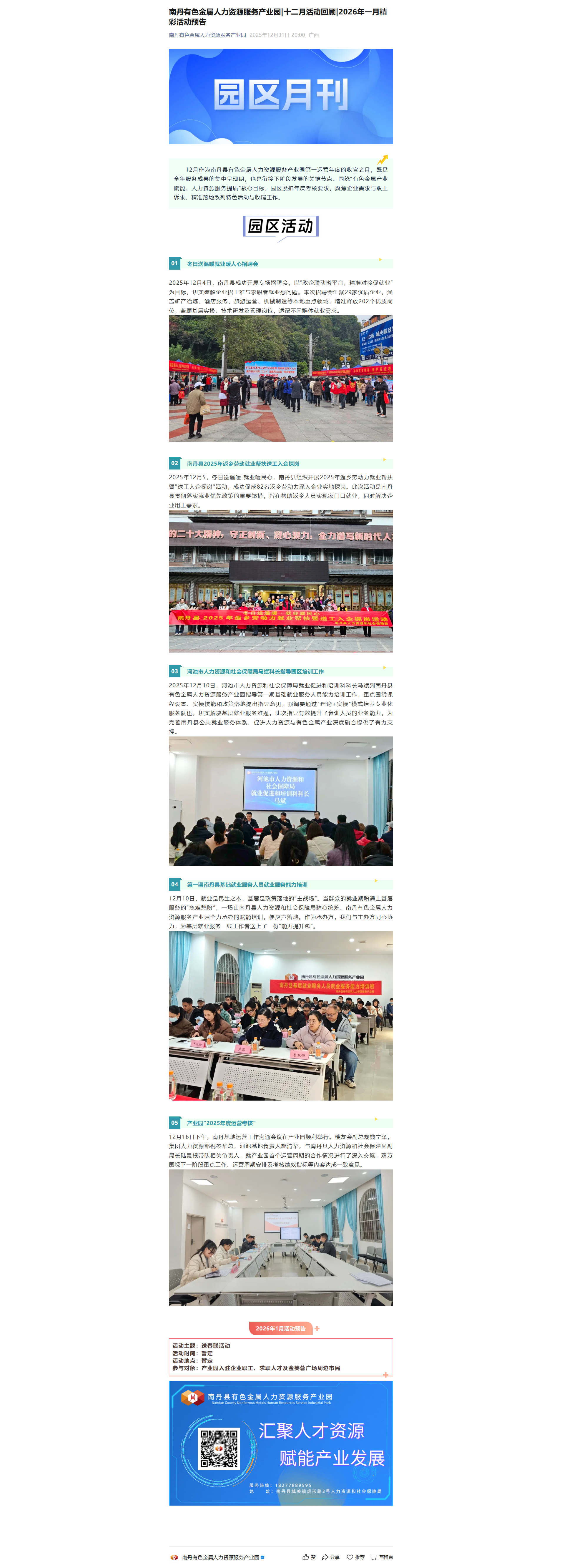 南丹有色金属人力资源服务产业园|十二月活动回顾|2026年一月精彩活动预告